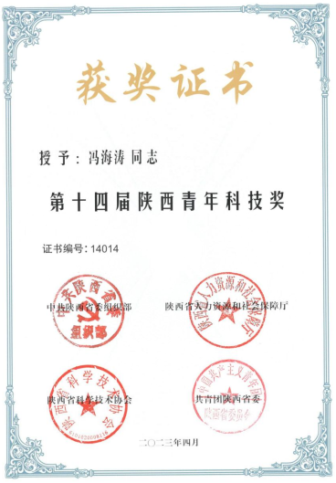 近日,中共陕西省委组织部、陕西省人力资源和社会保障厅、陕西省科学技术协会、共青团陕西省委公布了第十四届陕西青年科技奖获奖人员名单,bat365化学化工学院冯海涛教授荣获第十四届陕西青年科技奖。
