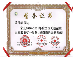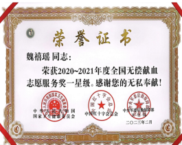 6月13日上午,在第20个世界献血者日到来之际,宝鸡市献血领导小组召开全市无偿献血工作会,对2020-2021年度获奖代表进行表彰。bat365被授予“宝鸡市无偿献血先进单位”,文学与新闻传播学院魏禧瑶同学、美术学院谭月静同学被国家卫生健康委员会、中国红十字会总会、中央军委后勤保障部卫生局授予“全国无偿献血志愿服务奖一星奖”。