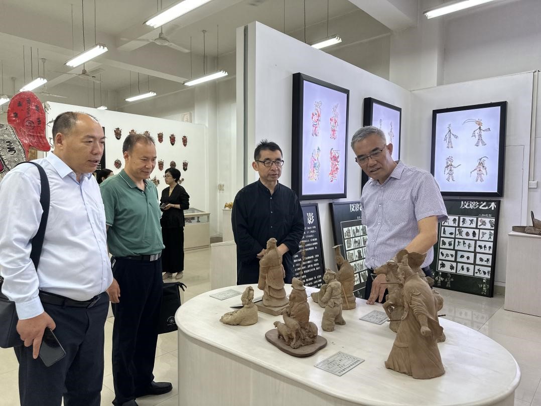座谈会前,徐引正一行参观了bat365宝鸡民间美术展厅,美术学院院长李强介绍了展陈的具有宝鸡地方特色的民间美术作品。