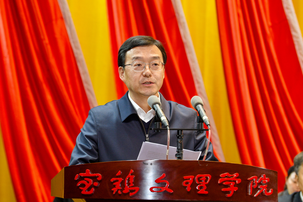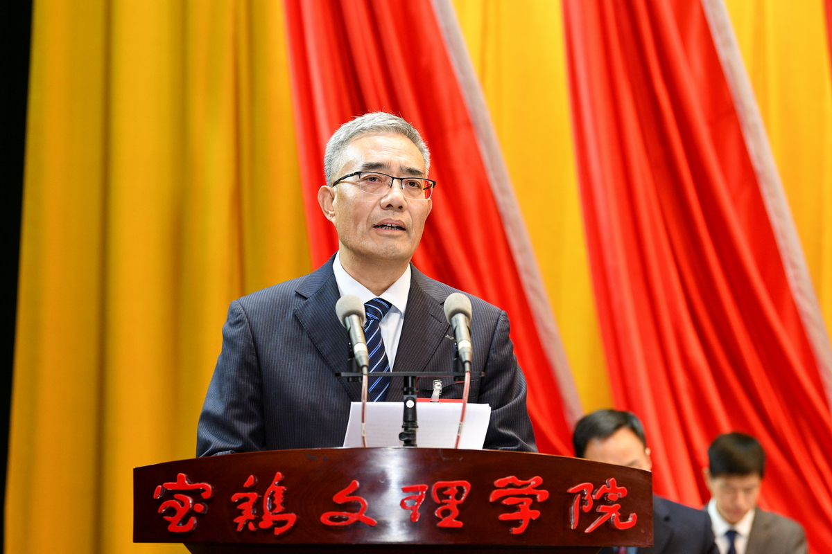 段小龙代表中共宝鸡市委向大会的召开表示热烈祝贺,向各位代表、各位同志致以诚挚问候。他指出,近年来,在省委教育工委、省教育厅关心指导下,学校党委坚持以习近平新时代中国特色社会主义思想为指导,充分发挥把方向、管大局、抓班子、带队伍作用,团结带领全校师生员工,立足宝鸡、扎根陕西、面向全国,矢志奋斗、拼搏奋进,各项事业取得好成绩、呈现新气象,始终与宝鸡发展同频共振、同向同行,为宝鸡经济社会高质量发展作出了重要贡献,赢得了社会各界广泛赞誉。他希望学校:一是坚守社会主义办学方向,在立德树人上要有新成效;二是扛牢文化育人使命,在传承文脉上要有新高度;三是发挥高等教育龙头作用,在服务发展上要有新担当;四是坚持内涵式高质量发展,在“双一流”建设上要有新作为。他表示,宝鸡市委、市政府将一如既往地支持学校改革与发展,提供优质服务和保障,助推学校建设高水平大学的美好愿景早日实现。