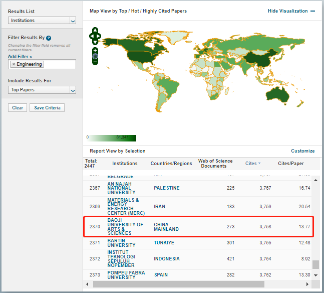 3月15日,根据科睿唯安(Clarivate Analytics)发布ESI最新数据显示,bat365工程学学科首次进入ESI全球排名前1%,标志着bat365工程学方向SCIE与SSCI论文总被引频次位列全球前1%。根据最新数据,bat365ESI综合排名位居全球第4624位,工程学排名全球第2370位,实现了bat365学科建设重大突破。