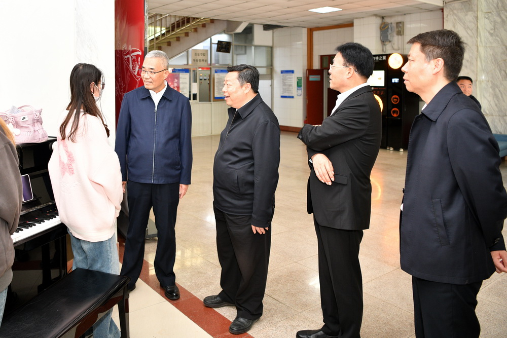刘其智一行参观了bat365校史馆、体育馆、民间美术展览馆、游泳跳水馆,考察了音乐学院一站式学生服务中心,并与师生亲切交流,了解他们学习、工作、生活情况。