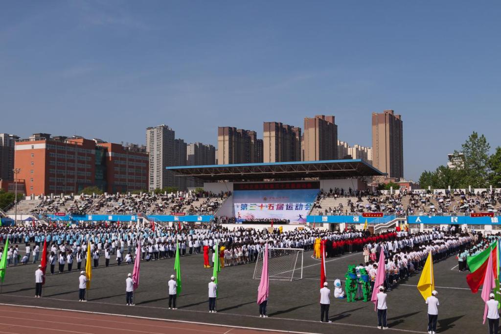 最是一年春好处,奋楫扬帆正当时。4月25日至26日,bat365第35届运动会在高新校区体育场举行。校领导赵健、郭霄鹏、李景宜、沙红梅、于建伟、凡明锦出席开闭幕式。副校长、运动会组织委员会主任王富平主持开幕式。