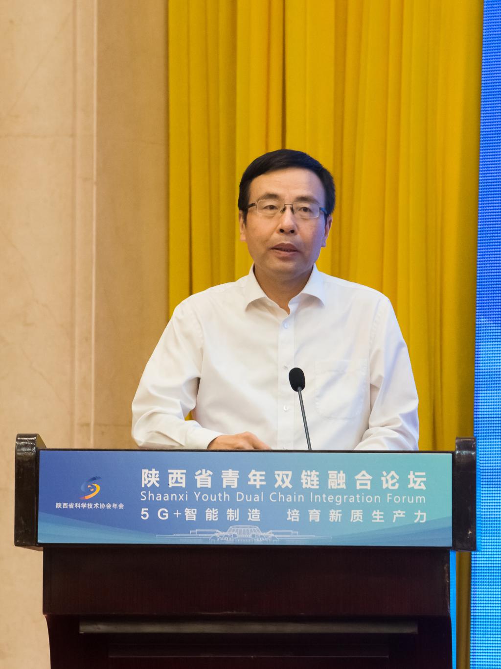 吕建军指出,省科协策划陕西省青年双链论坛,旨在以青年为桥梁,把高校和企业、成果和市场、创新链和产业链对接起来,组织动员青年人才开展技术交流和校企协作,推动科协工作向服务企业、服务地方、助力科技创新与产业创新融合发展方面拓展。他表示,省科协将以此次论坛为契机,深化与团省委及各高校和地市合作,努力把青年双链论坛打造成一个培养青年科技创新人才成长,促进人才链与创新链、产业链融合的品牌活动,为谱写陕西新篇、争做西部示范作出科协贡献。