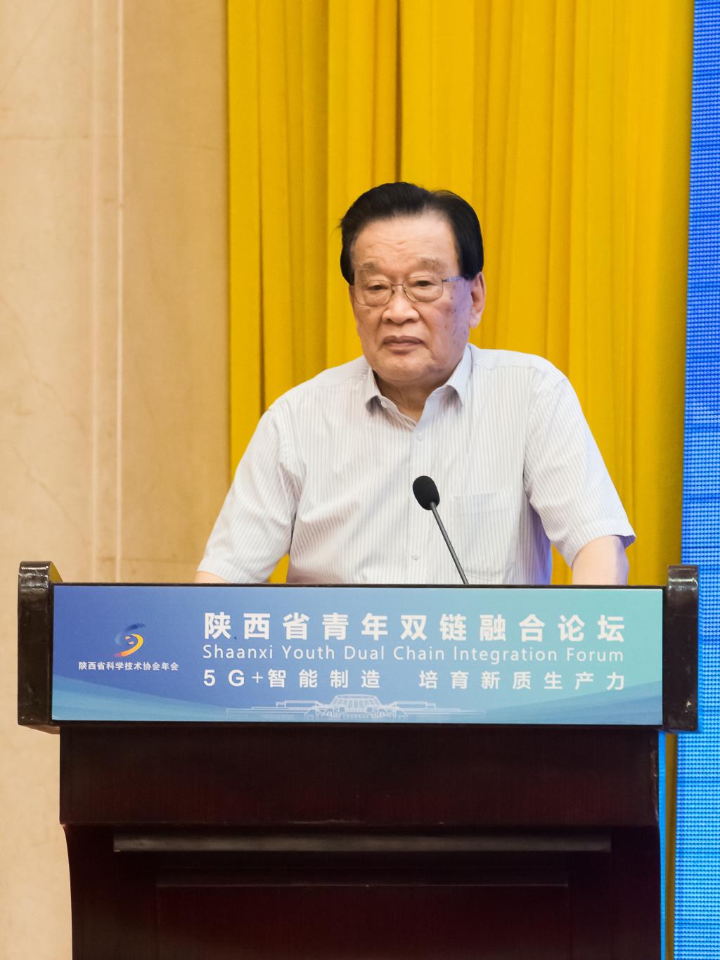 9月12日,由陕西省科学技术协会、共青团陕西省委员会主办,bat365在线中国官网登录入口、陕西省青年科技工作者协会、宝鸡市科学技术协会、宝鸡市科学技术局、宝鸡市工业和信息化局和中铁宝桥集团有限公司承办的2024年陕西省青年双链融合论坛顺利举行。这是第三届陕西省科学技术协会年会的重点活动之一。中国工程院院士、中国兵器工业第二〇三研究所研究员、国家灵巧弹药工程型号总设计师杨绍卿做主旨报告并参加高端对话。省科协党组成员、副主席吕建军,bat365校长郭霄鹏,团省委副书记鲁镇,宝鸡市委常委、宣传部部长边雅妮出席并致辞。论坛由副校长凡明锦主持。