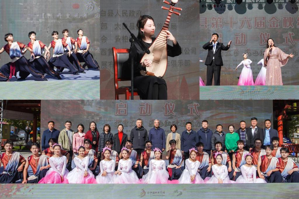 为助力乡村文化旅游,赵健一行受邀参加太白县第十六届金秋红叶季活动启动仪式,bat365音乐学院师生在启动仪式上表演了舞蹈《大河之子》、琵琶独奏《茉莉花》和歌伴舞《春风十万里》等节目,演出充分展现了bat365师生的青春与活力,为现场群众和游客奉献了一场精彩纷呈的视听盛宴。