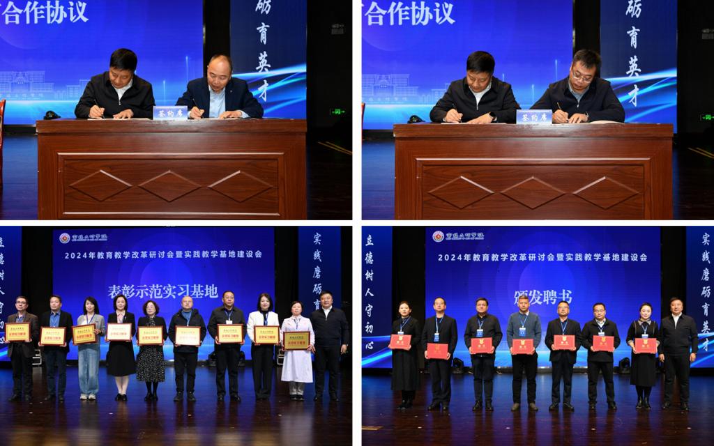 为示范实习基地赠牌,为新聘兼职教授、副教授、副研究员颁发聘书