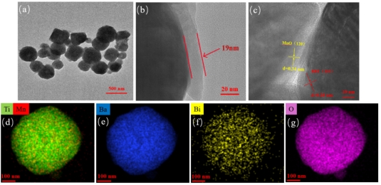 高储能特性的无铅陶瓷将满足先进脉冲电源系统和环境保护的迫切需要。Ba0.99Bi0.01TiO3(BBT)基弛豫铁电陶瓷具有高介电常数和高极化强度的优点,同时能保持较低的剩余极化。纯BBT陶瓷的击穿场强和饱和极化强度较低,从而其储能性能较差。为了优化BBT基无铅陶瓷的储能性能,本研究采用共沉淀法制备出分散性好的BBT微纳米粉体材料,并将MnO均匀包覆于BBT颗粒表面,形成新型“核-壳”结构的细晶弛豫铁电储能陶瓷。结果表明,“核-壳”结构的微观形貌设计以及对材料微观结构的精准可控合成,可以有效提高材料的绝缘、介电和储能性能。该研究在大功率脉冲储能和压电传感系统中具有良好的发展前景,为改善陶瓷复合材料的储能性能提供了新的思路。(科研管理处、化学化工学院 文、图/周妮妮 审核/王晓玲、胡登卫)
