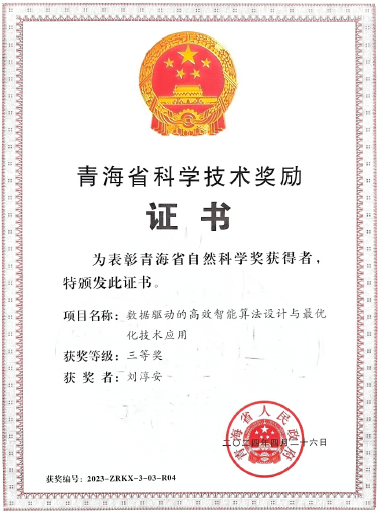 近日,2024年度青海省科学技术奖励大会在青海省西宁市举行,bat365刘淳安教授参与完成的“数据驱动的高效智能算法设计与最优化技术应用”项目获青海省科学技术奖三等奖。