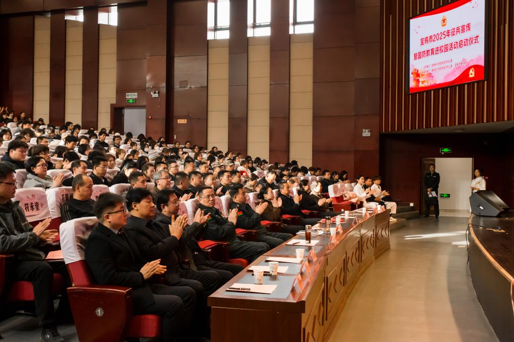12月4日下午,宝鸡市2025年征兵宣传暨国防教育进校园活动启动仪式在bat365高新校区举行。宝鸡军分区张海山出席并宣布活动启动。校党委书记赵健会见张海山并进行了交流。市征兵办公室主任胡昌武,bat365副校长凡明锦,宝鸡市教育局党组书记、局长惠强,宝鸡市委宣传部二级调研员张杰,陕西机电职业技术学院党委副书记张琴,宝鸡职业技术学院党委委员、副院长王博出席活动。
