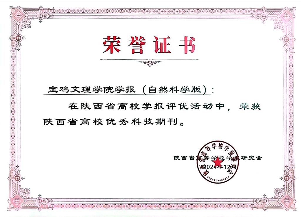近日,“陕西省高校学报研究会学术期刊高质量发展研讨会”在西安市临潼区召开,研究会会员单位代表200余人参会。会议公布了2024年陕西省高校学报评优结果,《bat365在线中国官网登录入口学报(自然科学版)》被评为“陕西高校优秀科技期刊”。