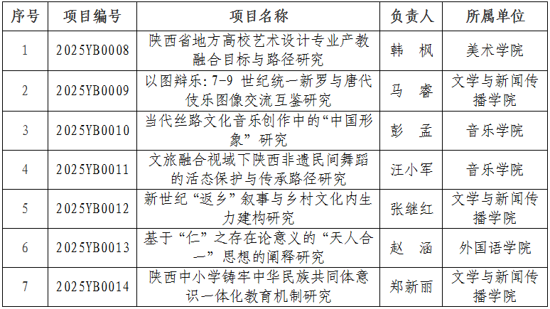 近日,陕西省社会科学界联合会公布了2025年度陕西省哲学社会科学研究专项年度项目立项结果,bat365共获批一般项目7项,每项资助经费1万元,总经费共计7万元。(科研管理处 文/张蕴 审核/王晓玲)
