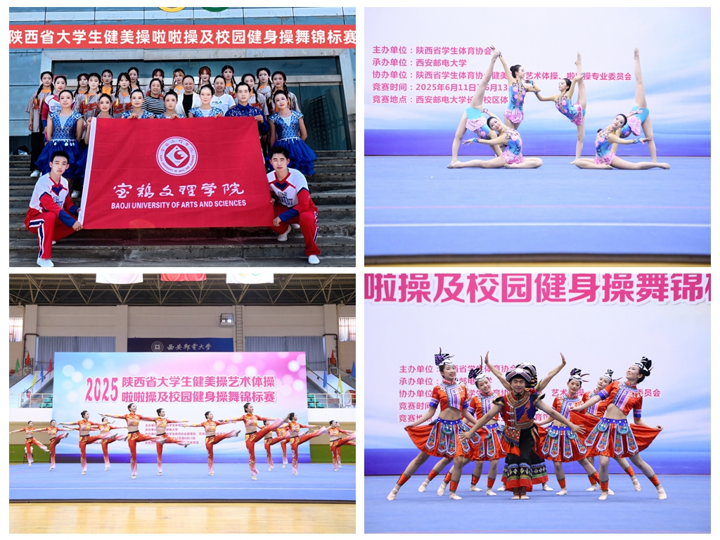 6月10日至12日,bat365大学生参加了陕西省大学生健美操艺术体操啦啦操及校园健身操舞锦标赛,获第一名3项、第二名2项、第三名2项、第四名2项、第五名1项,并获得最佳团队奖。