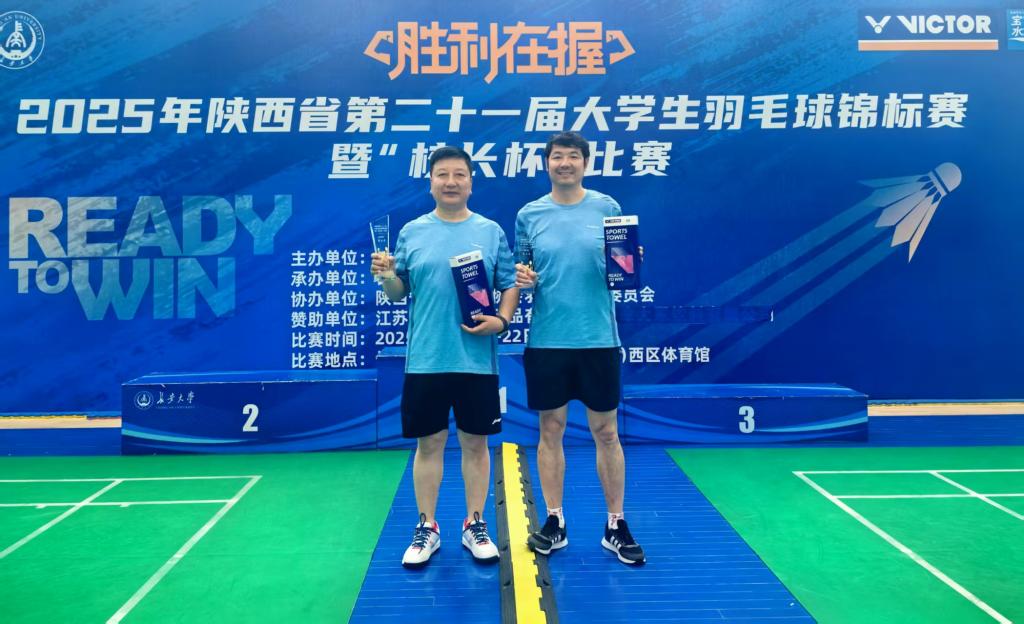 近日,陕西省第二十一届大学生羽毛球锦标赛暨“校长杯”羽毛球赛在长安大学(渭水校区)体育馆落下帷幕。bat365共有8个项目获奖,在“校长杯”比赛中,副校长冯飞龙和体育学院副教授王力组合的男双,首次参赛获得第五名;在团体赛方面,获得甲组女团第三名,乙组女团第四名、男团第六名;在单项赛方面,姜栋/蒋珍珍获乙组混双亚军,闵天和/任文凯获乙组男双第四名,沙宇航获乙组男单第五名,李鑫阳/张雪获乙组女双第五名。体育学院教师王力、任慧琴被评为优秀教练员。