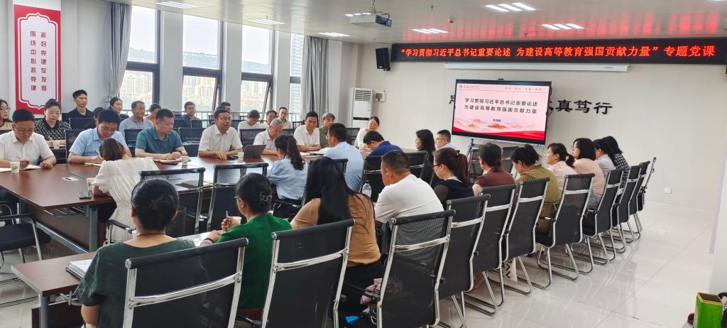 郭霄鹏以“学习贯彻习近平总书记重要论述 为建设高等教育强国贡献力量”为题讲授了专题党课。他结合学习贯彻习近平总书记在全国教育大会上的重要讲话精神,从建设具有强大的思政引领力、人才竞争力、科技支撑力、民生保障力、社会协同力、国际影响力等六个方面深入阐释了教育强国的科学内涵,从高等教育取得的进展和成就、存在的问题和短板两个方面,结合国内外大量权威且详实的数据深刻剖析了我国高等教育现状,明确指出了建设高等教育强国的五个路径:一是优化高等教育结构,实现高质量普及;二是以“双一流”建设为引领,提升各类高校办学能力;三是加强人才培养,更好地服务高质量发展;四是提高教育、科技、人才一体化发展水平;五是推动高等教育高水平对外开放,提升来华留学质量。