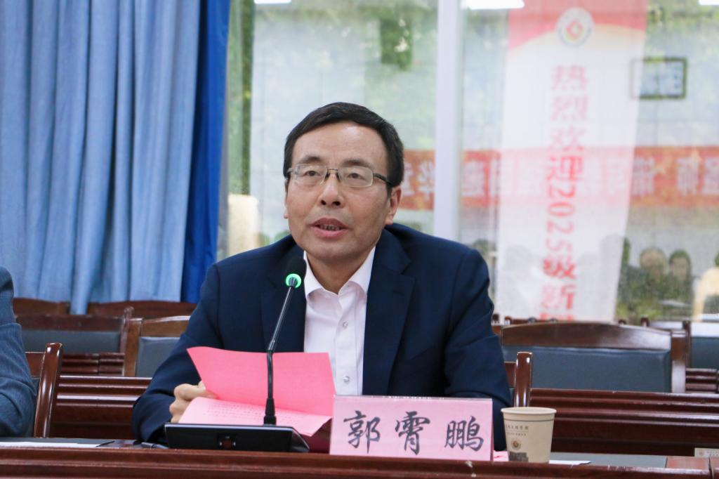 郭霄鹏对新入职教师表示祝贺与欢迎。他介绍了宝鸡市情、学校发展历史和近年来取得的办学成就,并向新入职教师提出五点希望。一是要提高政治站位,勇担教育使命。各位新教师要增强投身教育强国建设的政治自觉、思想自觉和行动自觉,主动将个人发展融入国家和学校发展大局,为学校发展和教育强国建设贡献个人力量。二是要坚守育人初心,彰显师德担当。新教师们无论是在哪个岗位,都必须牢记为党育人、为国育才的初心使命,切实履行教书育人、服务育人职责,弘扬教育家精神,将立德树人根本任务落到实处。三是要紧跟时代需求,提升个人本领。新教师要有强烈的本领恐慌意识和终身学习理念,需主动紧跟时代需求、对标学科前沿动态、提升科研创新能力,以过硬本领回应时代对高素质教师的要求,为教育事业发展注入活力。四是要重视集体荣誉,投身学校发展。新教师要把个人成长与学校发展紧密相连,主动作为、履职尽责,在实干中增长才干、贡献力量。五是要珍惜青春年华,矢志建功立业。新教师要珍惜美好的青春时光,努力奋斗,在创新实干中锤炼自己、在砥砺奋斗中提升自己,争做有理想信念、有道德情操、有扎实学识、有仁爱之心的“四有”好老师。