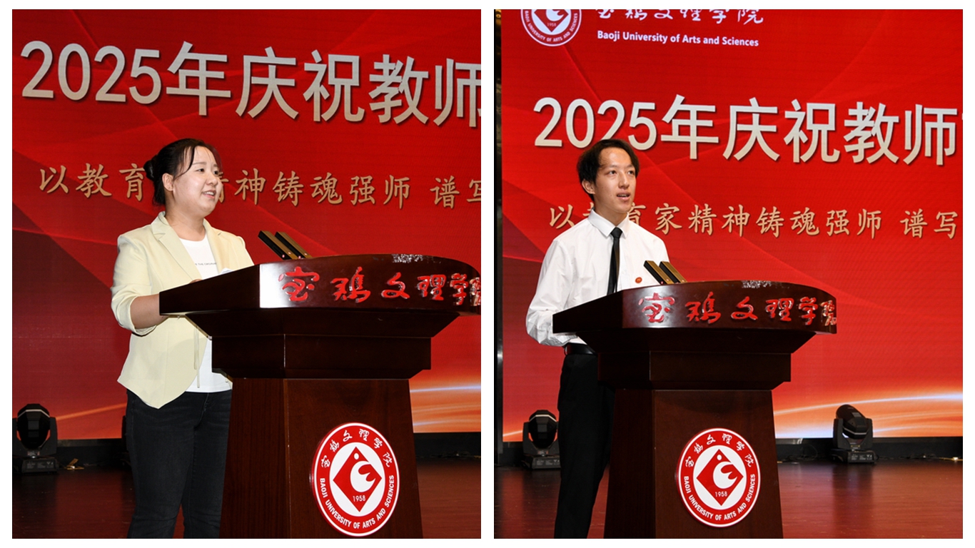 教师代表,化学与材料工程学院董瑞博士分享了从文理学子到文理教师的经历,以及对教师这份职业的思考,要以教育家精神为指引,培养更多担当民族复兴大任的时代新人。学生代表,文学与新闻传播学院2023级播音与主持专业本科生李想同学表达了对学校及老师真挚的谢意,并代表全校学生向老师们送上节日祝福。