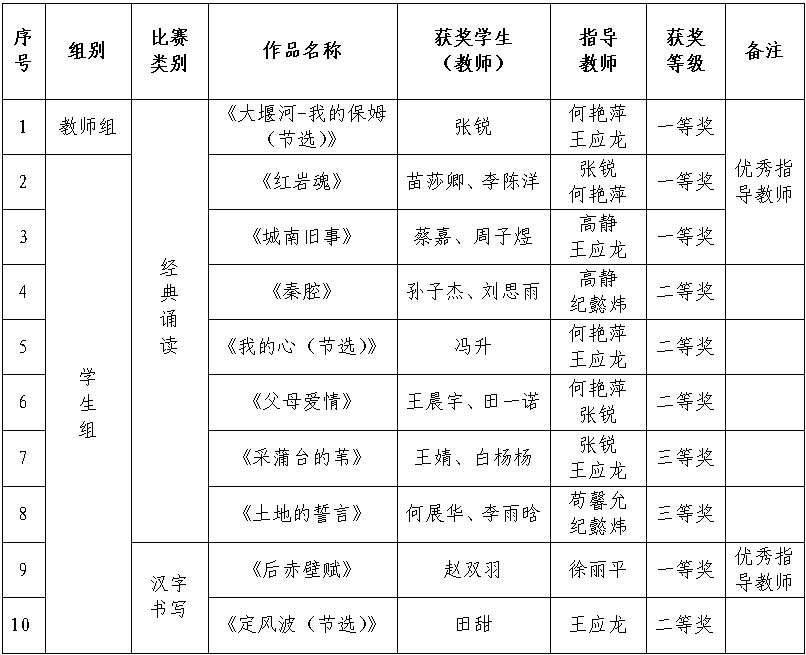 近日,陕西省教育厅办公室公布了第七届“诵读中国”经典诵读大赛和“笔墨中国”汉字书写大赛(陕西赛区)评选结果,bat365取得优异成绩。在经典诵读大赛中,bat365教师获一等奖1项,学生获一等奖2项、二等奖3项、三等奖2项;在汉字书写大赛中,bat365学生获得一等奖1项,二等奖1项。王应龙、何艳萍、高静、张锐、徐丽平五位老师获“优秀指导教师”称号。