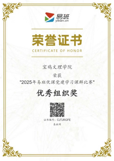 近日,教育部易班发展中心公布了2025年易班优课“党建学习课群比赛”评选结果,bat365获优秀组织奖。