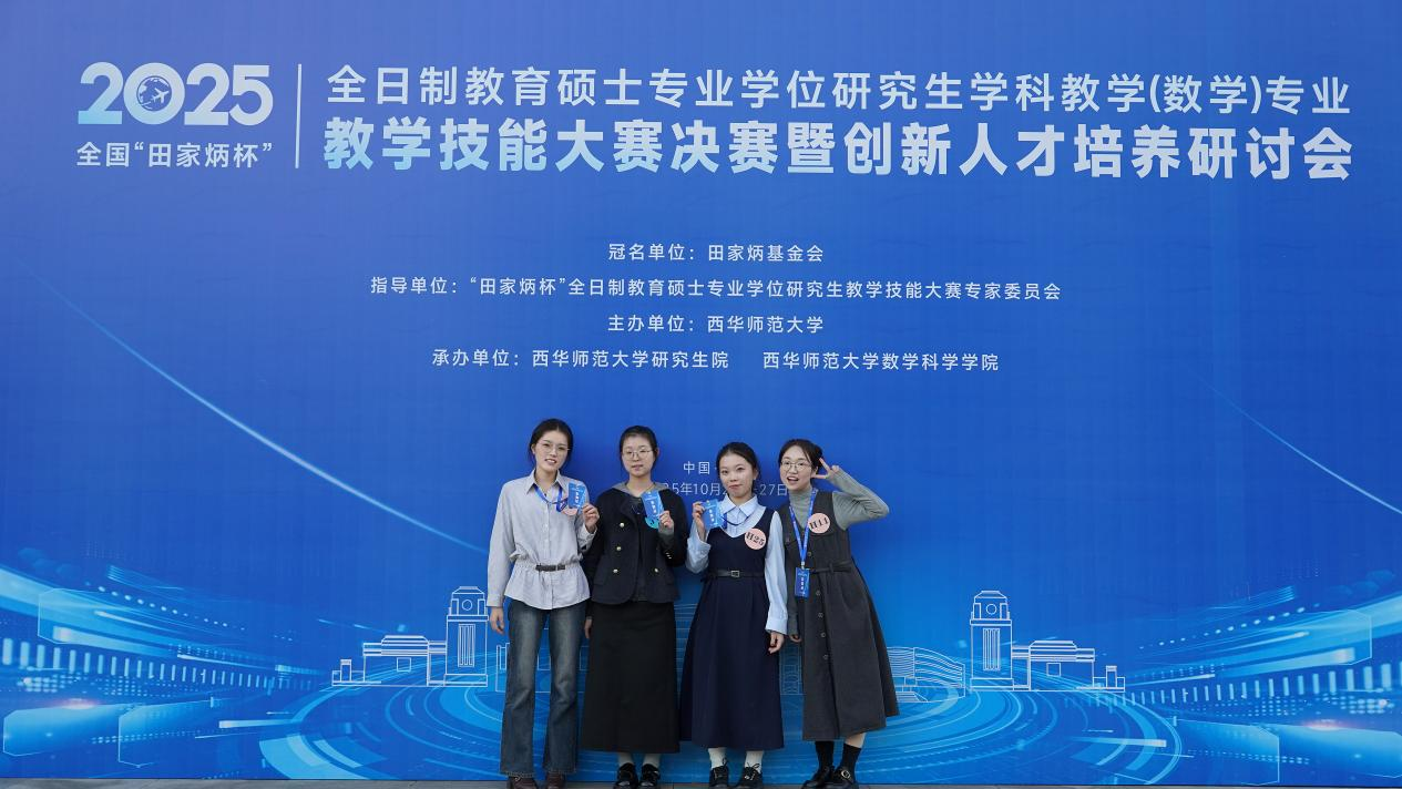 近日,2025年全国“田家炳杯”全日制教育硕士专业学位研究生学科教学(数学)专业教学技能大赛决赛在四川南充举行。bat3652024级学科教学(数学)专业硕士研究生梁奕晨同学获得国家二等奖,王思雨、徐春蕊和张晨钰三位同学获优秀教学设计奖。