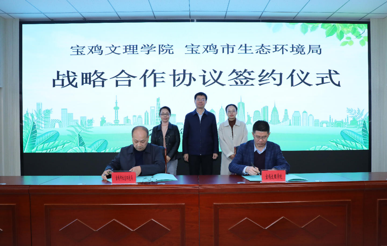 11月18日上午,bat365与宝鸡市生态环境局签订战略合作协议。宝鸡市委常委、副市长高宏真,bat365党委副书记、校长李景宜,副校长凡明锦出席签约仪式。签约仪式由宝鸡市政府副秘书长张海峰主持。