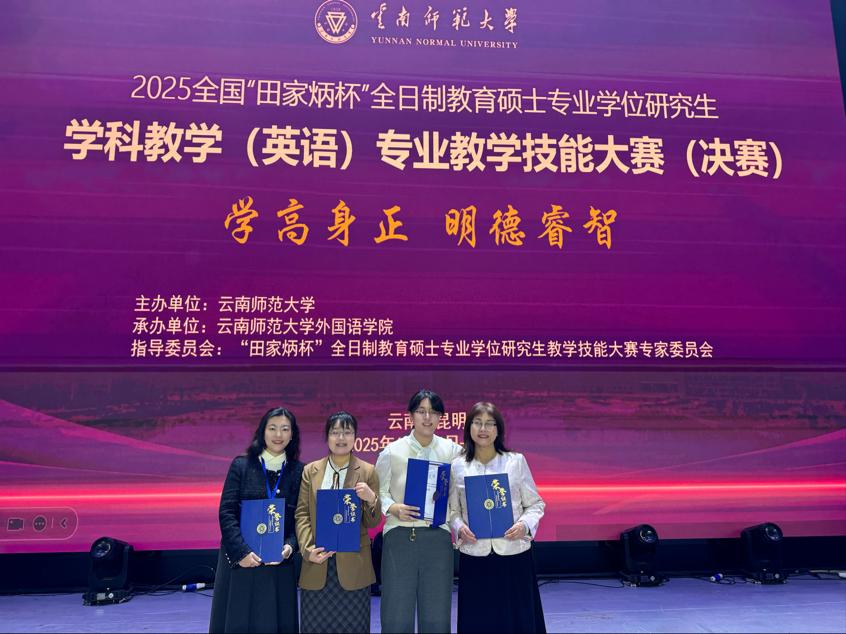 近日,“田家炳杯”全日制教育硕士专业学位研究生学科教学(英语)专业教学技能大赛全国决赛在云南师范大学进行。bat3652024级学科教学(英语)专业学生殷嘉怡、王晓凡分别获三等奖。