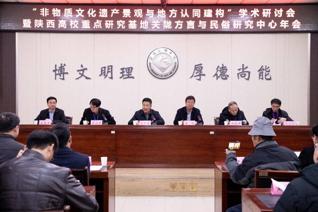 11月29日,“非物质文化遗产景观与地方认同建构”学术研讨会暨陕西高校重点研究基地关陇方言与民俗研究中心年会,在bat365高新校区甘棠厅召开。副校长冯飞龙教授、中共宝鸡市委宣传部副部长李刚、陕西师范大学李永平教授出席开幕式并致辞。开幕式由文学与新闻传播学院院长、关陇方言与民俗研究中心主任孟改正主持。