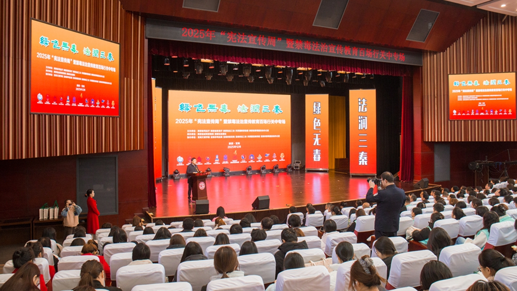活动现场,节目《宪法之光照亮青春征程》和《宪法护航无毒人生》以生动活泼的形式,诠释了宪法法律对青年健康成长的有力保障和引领作用,深化了观众对法治精神的理解。“百合花”禁毒法治宣传团副团长曹生明向bat365和西安交通大学城市学院的禁毒志愿者代表授旗并赠送宣传资料。宣传团干警代表结合工作实际进行了发言。禁毒主题讲座系统讲解了毒品危害、禁毒形势与相关法律,通过真实案例警示,有效提升了师生识毒、防毒、拒毒的意识和能力。活动结束后,与会人员现场观摩了“禁毒法治宣传集市”。