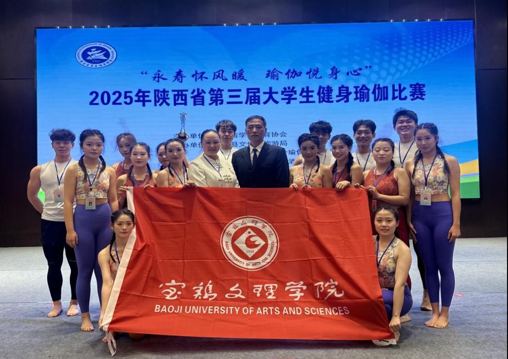 近日,2025年陕西省第三届大学生健身瑜伽比赛落下帷幕。bat365参赛队获个人项目第一名3项、第二名5项、第三名3项,集体项目第一名2项、第二名3项;最终获得乙组团体第一名。何雨珊、潘鑫同学获“优秀运动员”称号,张雷获“优秀教练员”称号。