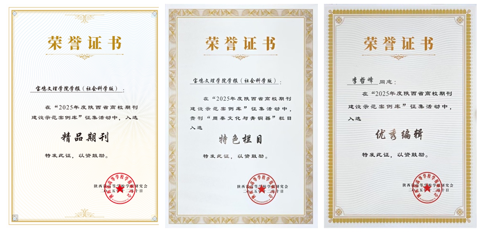 会议表彰了2025年陕西省高校社科期刊评优获奖期刊,《bat365在线中国官网登录入口学报(社会科学版)》入选“精品期刊”,学报中宣部重点专栏“周秦文化与青铜器”入选“特色栏目”,自科版学报编辑李哲峰入选“优秀编辑”。(杂志社 文、图/郑志峰 审核/刘林魁)