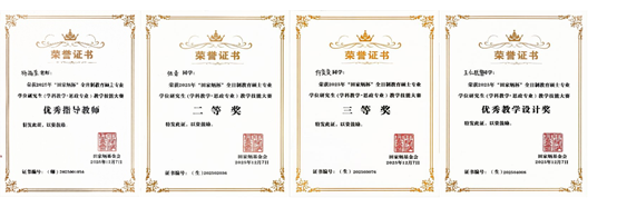 近日,2025年“田家炳杯”全日制教育硕士专业学位研究生学科教学(思政)专业教学技能大赛全国决赛在江西师范大学举行。bat365政法与历史学院2024级学科教学(思政)专业研究生张青、仵奕奕、王仁聪慧分别获二等奖、三等奖和优秀教学设计奖,杨福荣老师获“优秀指导教师”。