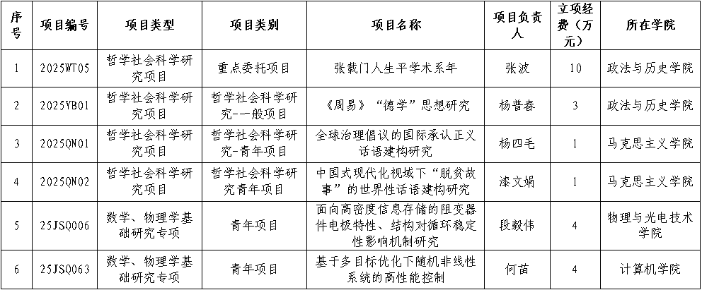 近日,陕西省教育厅印发了《关于下达2025年度“哲学社会科学研究项目”的通知》(陕教函〔2026〕80号)和《关于下达第三批数学、物理学基础研究专项项目的通知》(陕教函〔2026〕79 号),bat365共获批6项专项科研项目,共资助经费23万元。(科研管理处 文/党建华、张蕴 审核/胡登卫)