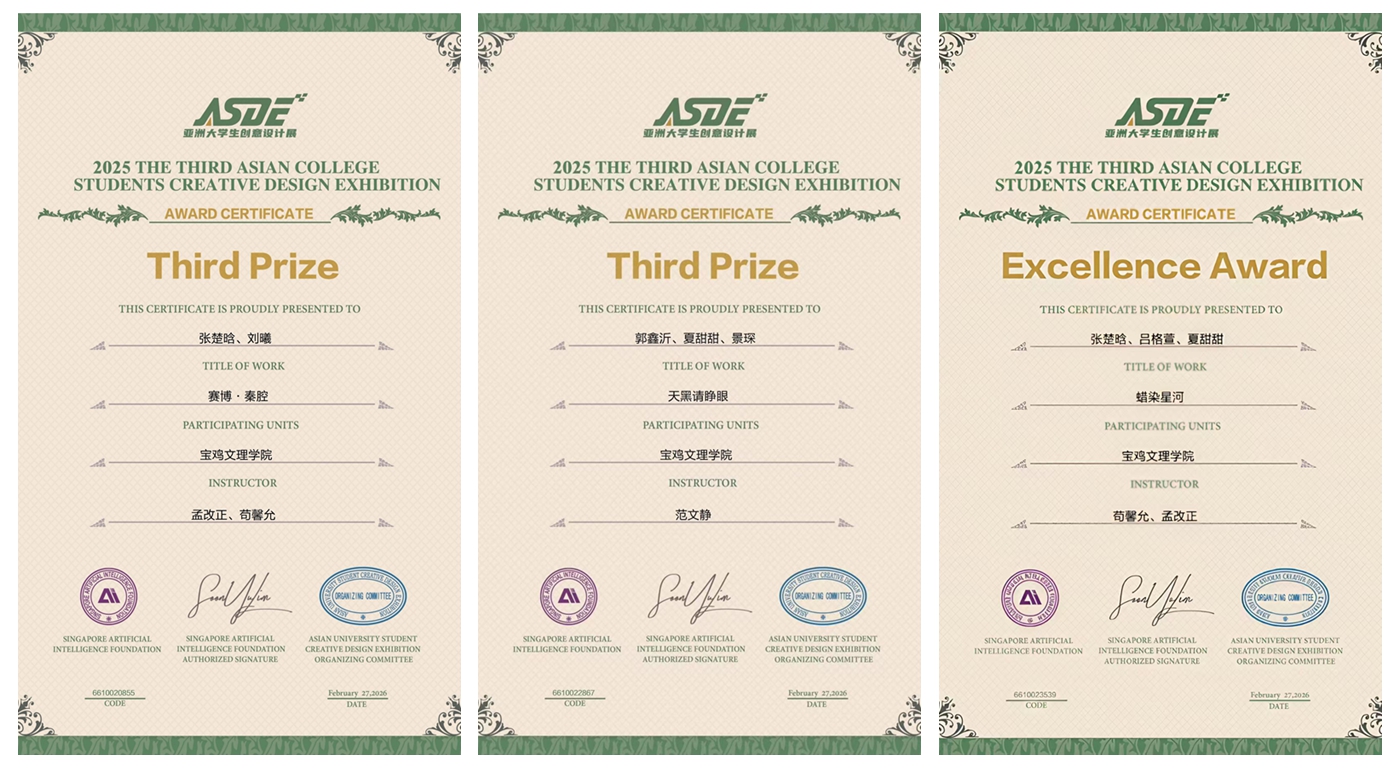 此次获奖,彰显了bat365研究生教育的培养成效与专业实力,也是学校始终坚持“以赛促学、以赛促教、赛教融合”育人理念的生动体现。学校将持续鼓励师生参与高水平学科竞赛与国际化学术交流,以赛赋能、以练促学,不断提升师生专业实践能力与创新创造能力,着力培养更多兼具国际视野、家国情怀与创新精神的高素质艺术人才。(研究生院、文学与新闻传播学院 文、图/张博飞 审核/王肖烨、孟改正)